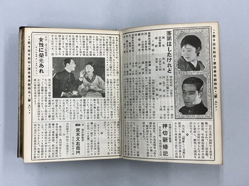 下の写真はどちらも当時の資料で、上が雑誌『蒲田』(1930年6月号)の『落第はしたけれど』の作品紹介のグラビア記事で、右上の横長の写真に笠智衆が写っています。また、下の資料は浅草帝国館発行の映画館プログラム「帝国館ニュース」No.56(1930年4月3日発行)で、右頁に『落第はしたけれど』の広告が掲載されており、笠智衆の名も見ることができます。