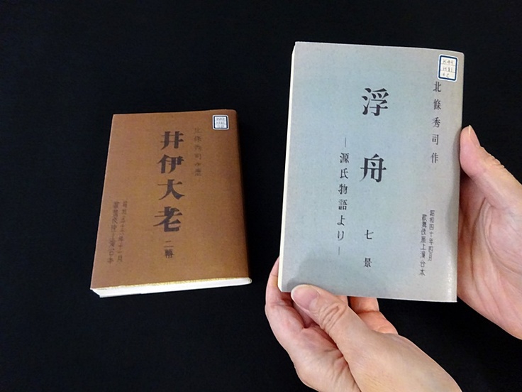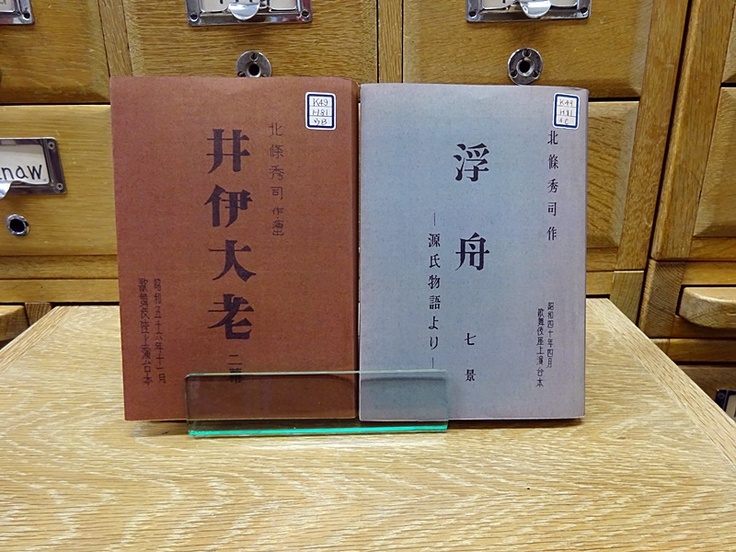 北條秀司作品『井伊大老』『浮舟』の台本の表紙をデザインに使用したオリジナル文庫本カバー(非売品) をお届けいたします。
