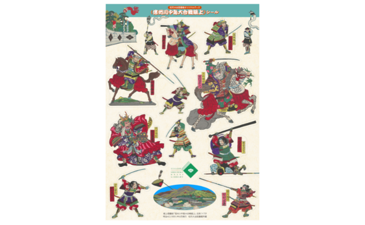 当館が所蔵する組上燈籠絵『信州川中島大合戦組上』(明治42[1909]年)をデザインに使用したオリジナルシール