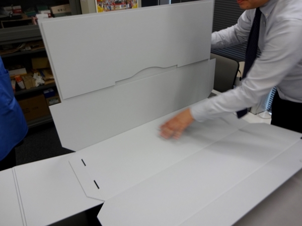 そして、表紙の劣化がまだそれ程進んでいないスクラップブックについては、棚の寸法に合わせて一段につき1個ずつ「組み立て式棚はめ込み箱」の制作をお願いし、スクラップブックを約30冊ずつ収納する予定です。