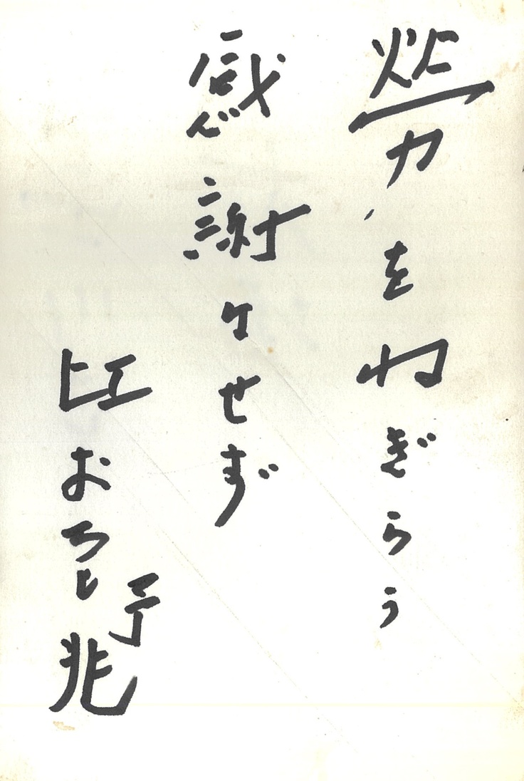 話は三十分にも一時間近くにもなる事があった。にぎりしめた手と二の腕の関節が固まって、正常に戻るには同じ時間がかかった。黒マジックの太字で届く指示の葉書も、改めて数えたら百六十枚を越えていた。依頼の文言の 後 の赤字で書かれた不急の文字は、急げと言うことだとは、しばらくして知る事になった。「勞をねぎらう 感謝はせず」という直撃も五通ほど混っていた。