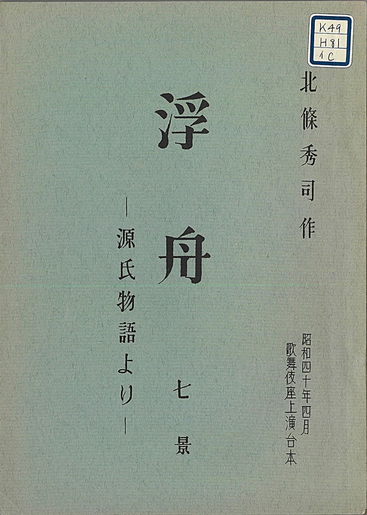 舞台での上演としては、昭和28(1953)年7月明治座で初演されました。舟橋源氏が光源氏の生涯を描いたのに対し、『浮舟』は、「源氏物語」の最終部分にあたる「宇治十帖」を題材にした光源氏亡き後の物語となっています。また北條秀司は自身の著書の中で、「(舟橋源氏に対して)私の方は人間描写、生活描写に主点を置いた王朝風俗の現代劇である。光源氏を中軸にしたホームドラマである」と述べており、物語や人物の描き方の違いも注目すべきところです。