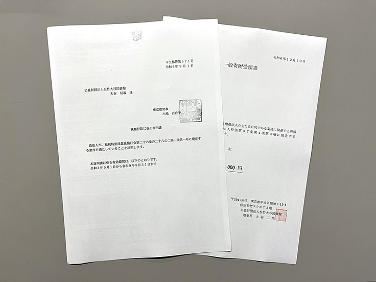 ■寄付受領書・控除証明書(2025年1月末に発送予定)