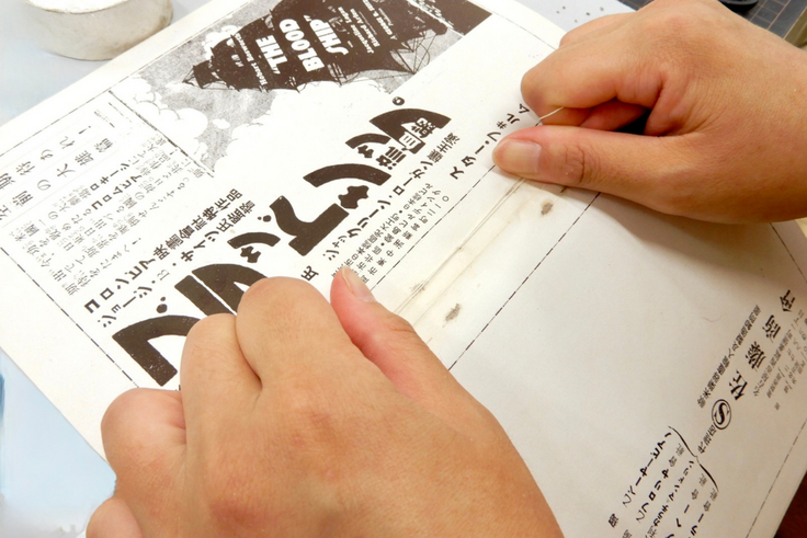 松竹座関連資料の簡易補修とタトウ式保存箱の制作作業