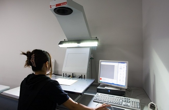 (「寺田倉庫」さんでのデジタル化作業の様子)