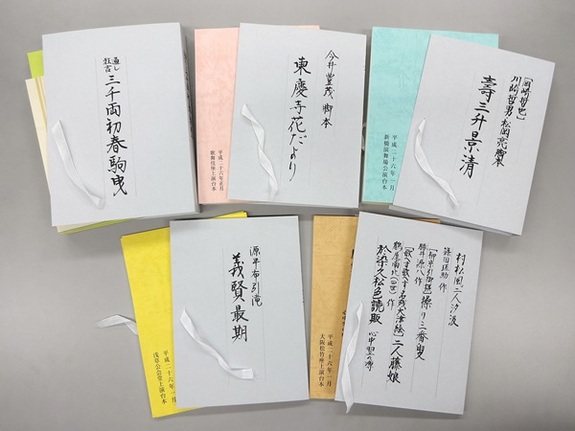 東京の国立劇場で行われた公演の台本も3冊リストに入れました。国立劇場の台本はひとつの公演の演目が1冊にまとめられているのが特徴です。今回は平成25年10月『一谷嫩軍記/春興鏡獅子』と平成26年1月『三千両初春駒曳』、平成26年3月『菅原伝授手習鑑 車引/處女翫浮名横櫛 切られお富』を選びました。