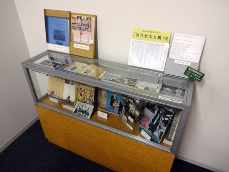 さて、ここからは本日より始まった11月のミニ展示のお知らせです。11月は、歌舞伎座の吉例顔見世大歌舞伎で行われる「初世松本白鸚三十三回忌追善」に合わせて、初代松本白鸚さんに関する資料を展示しています。