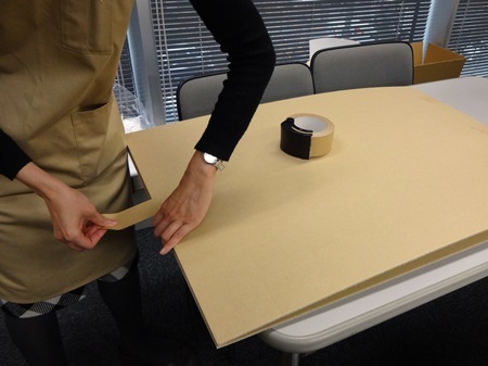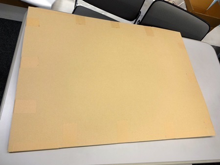 完全に包みました。 その上に段ボール板を置き、はさみます。