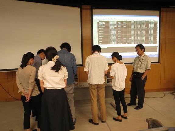また、7月26日(日)の[第3部]ワークショップでは、当館スタッフが演劇上演記録データを加工して、図書管理システムにインポートし、資料の書誌データを作成するという作業のデモンストレーションをしてまいりました。