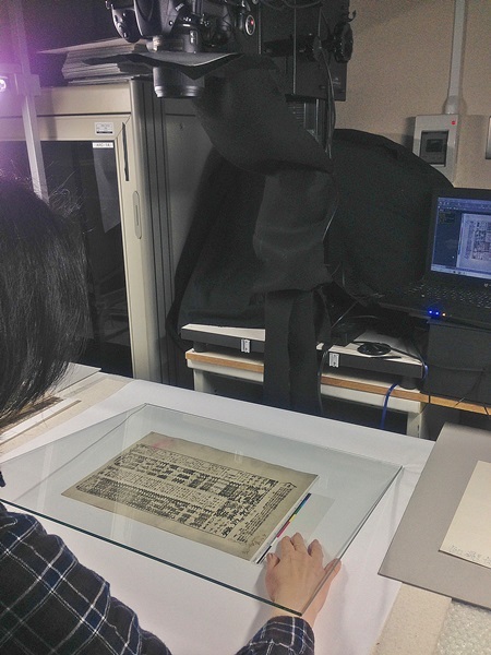 昨年末に、立命館大学アート・リサーチセンターに到着した当館の番付ですが、年明けから、丁寧なシワ伸ばしを経て、一点一点重いガラス板に挟み込んでの撮影、と気の遠くなるような作業が続けられ、ついに6,630カットの撮影が終了!立命館大学アート・リサーチセンターのスタッフの皆様には本当に頭が下がります!