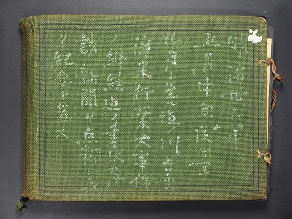 【音貞アルバム】の表紙「川上一座渡米行業大事件ノ終結迄ノ」との文字が見える(撮影:浜田聡一郎氏)
