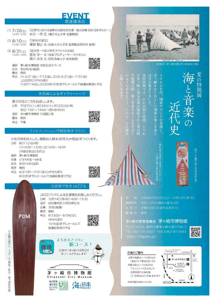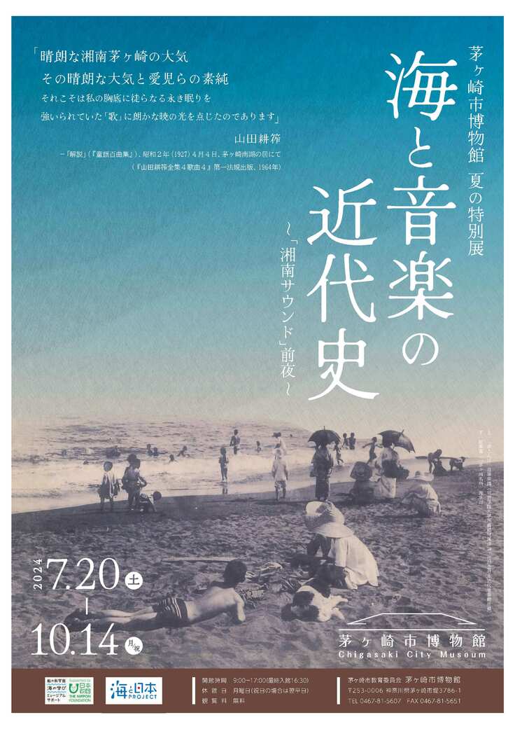 7月20日(土)から、茅ヶ崎市博物館において、夏の特別展「海と音楽の近代史~「湘南サウンド」前夜~」が開催されています。茅ヶ崎に海水浴場が開設された明治時代後期以降、海と音楽をめぐる文化がどのような歩みをたどったのか、その歴史を覗いてみるような企画展示です。