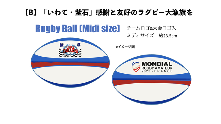 【B】「いわて・釜石」感謝と友好のラグビー大漁旗を「ラグビーボール」