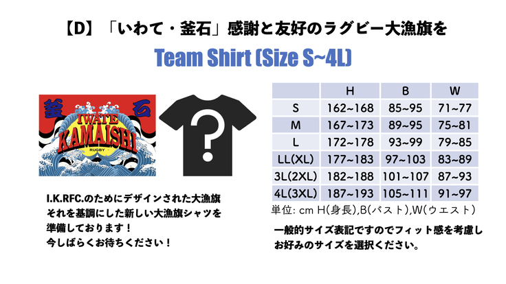 【D】「いわて・釜石」感謝と友好のラグビー大漁旗を「チームシャツ」