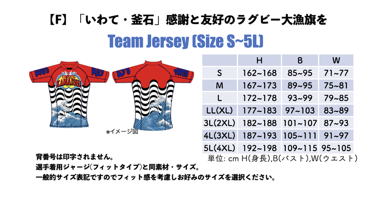【F】「いわて・釜石」感謝と友好のラグビー大漁旗を「チームジャージ」