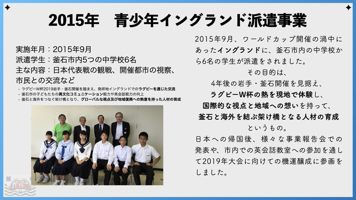 今回のアマチュア大会への選手派遣に併せて、釜石市では中学生の代表を派遣します。