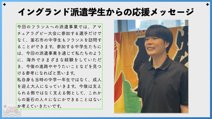 先日「活動報告」で、釜石市における国際交流事業としてご紹介した2015年のイングランド派遣。