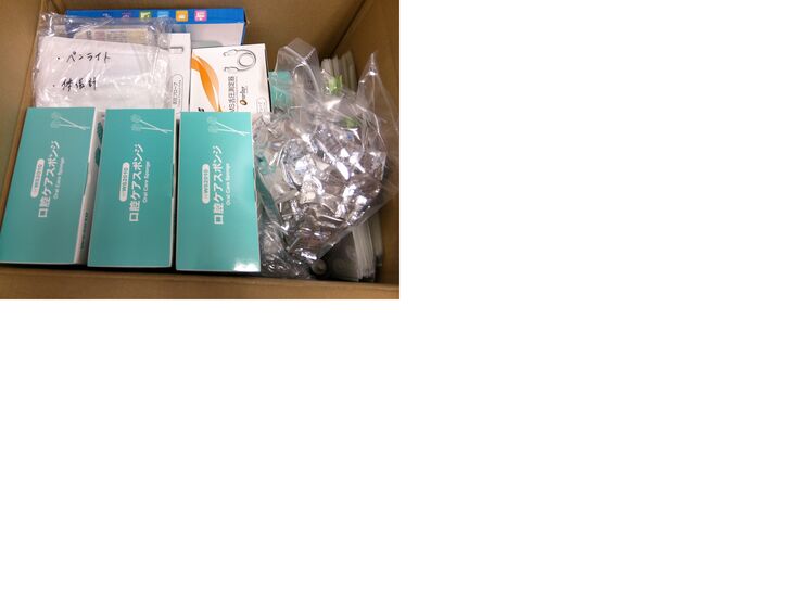4件の連携歯科医院(多施設臨床研究の分担者)に送付する荷物がすべてまとまりました。