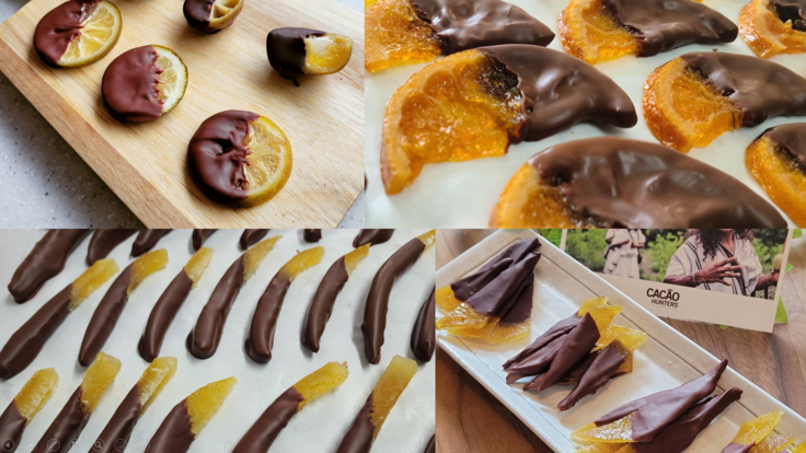※オランジェットは、オレンジの皮のピールにチョコレートをコーティングしたものを指しますが、ここでは広義的な意味で、果肉部分も含めて柑橘をチョコレートコーティングしたものをオランジェットとします。