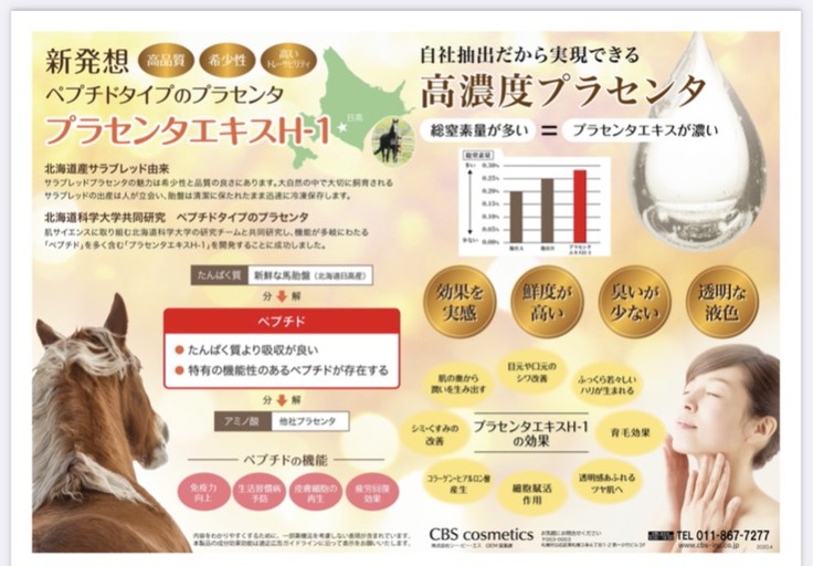 北海道産のサラブレッドの胎盤(プラセンタ)から抽出されたエキス。