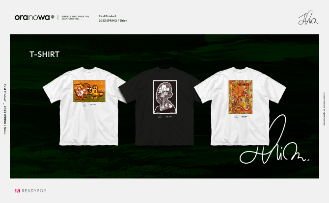 遠くからも目を引くような作品、SHIONさんの繊細な魅力が詰まったTシャツができたのではないかと思います。