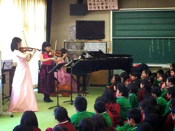 いつもお邪魔している弦楽器教室とはまた違い、私たちがクイズや曲目紹介などを交えて演奏をすると 子どもたちの反応も良く、聴いたことのない曲にも興味を持って聴いてくれました。