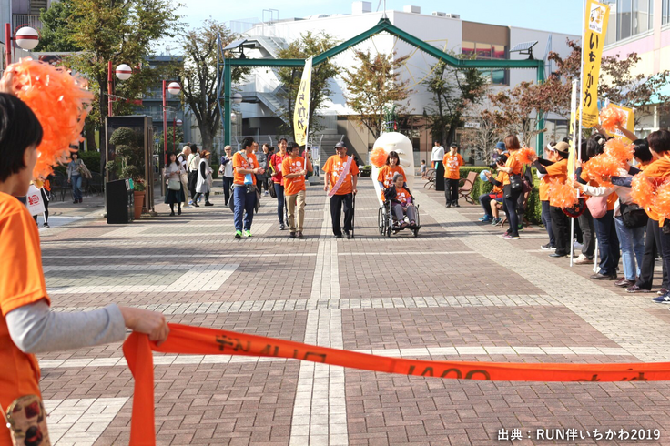 オレンジスマイルいちかわは家族や友人、ご近所通しでチームをつくり、市川市内に設定した3つのコースで、前のチームから受け取ったタスキを、割り振られた区間ラン&ウォークして次のチームへとつないでいきます。