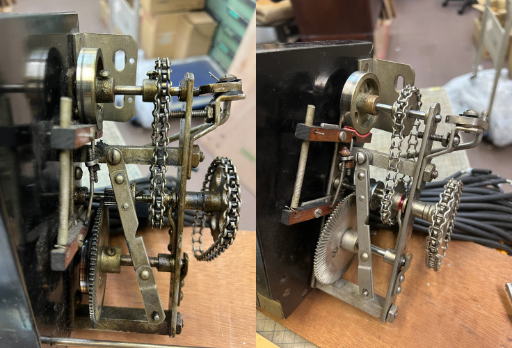 右が修復後。ひとつひとつのパーツがきれいに洗浄され、見るからに動きが軽そうです。