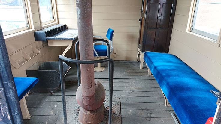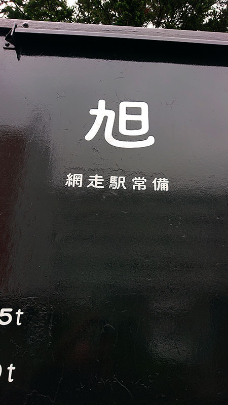 これらの文字はJR北海道から頂いたデータをもとに切り文字を作り、それをトレースしてけがきし、更に白ペンキで筆書きしていただきました。職人技です。