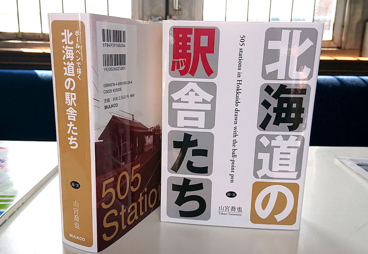 今回返礼品とする画集「北海道の駅舎たち」には2003年から2012年までに描かれた全道505の駅舎が収められています。ボールペンによる精密であっても暖かい画風が駅々への思い出を誘います。2013年に2刷が発刊されたものの現在は書店での入手は困難となっています。
