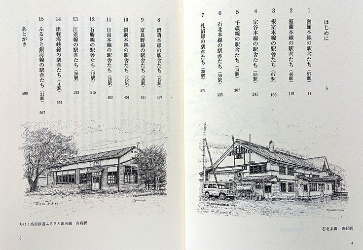 美術教師として活躍された山宮喬也氏のボールペン画によって描かれた道内505駅の駅舎たち。廃線・廃駅・新旧駅を含み、取材訪問時の著者の想いとともに収録されています。