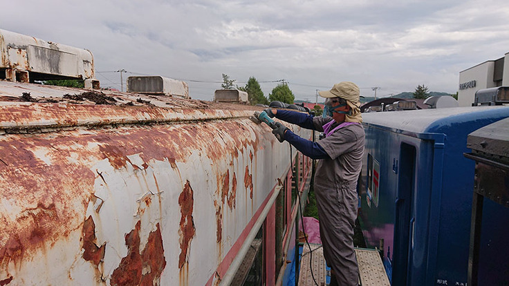 9月19日、キハ27の修復作業を開始しました!