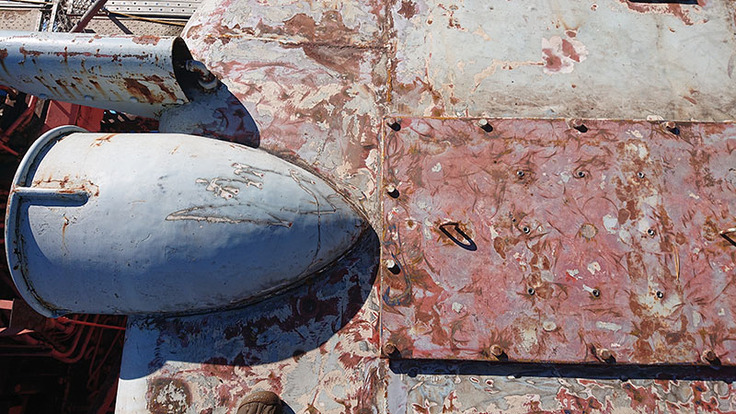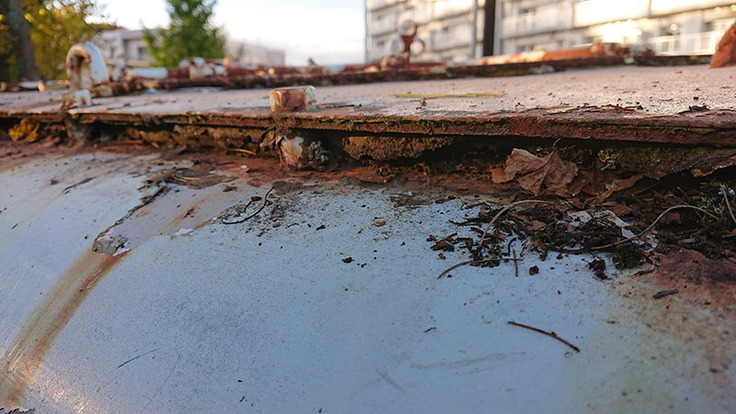 この土埃と苔を除去し、グラインダーをかけていきます。このあたりの防錆処理が後々の状態に影響しますね。こうした細かな作業が多いです。