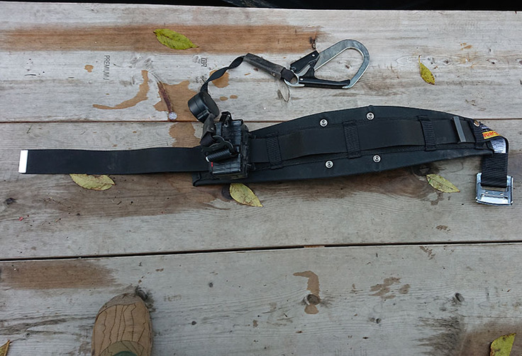 屋根に上ることは多いので、滑落対策が必要です。これを腰に巻いての作業です。安心感が違います!