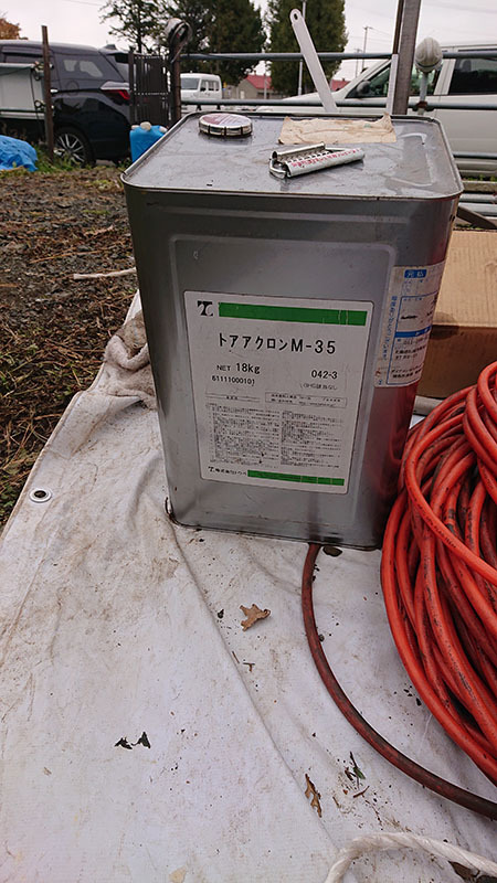最終的にエアーガンの入らなかった部分もあります。その部分はこの固化剤で封印されました。