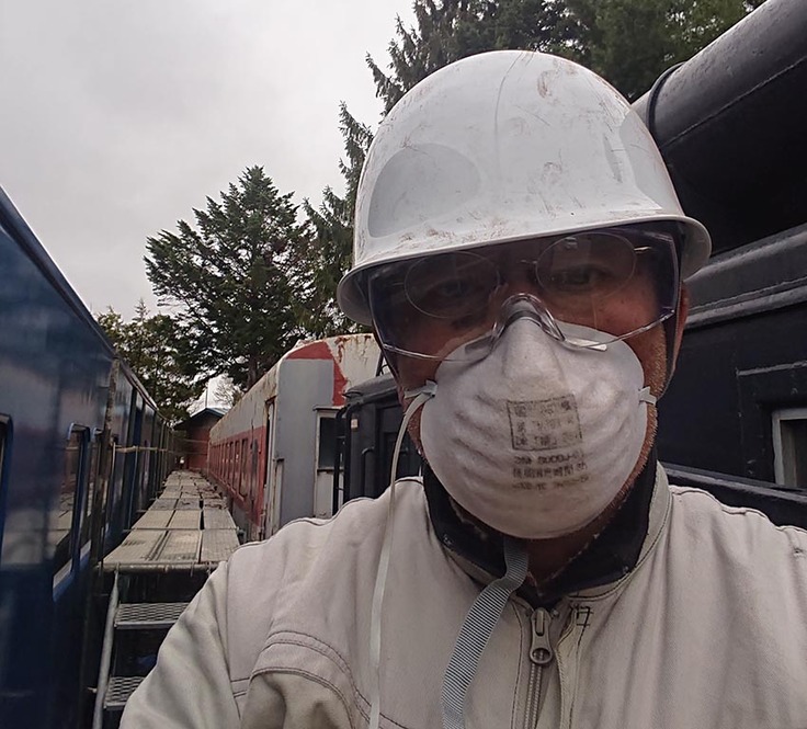 キハ27の冬囲いを外し、修復作業再開しています。