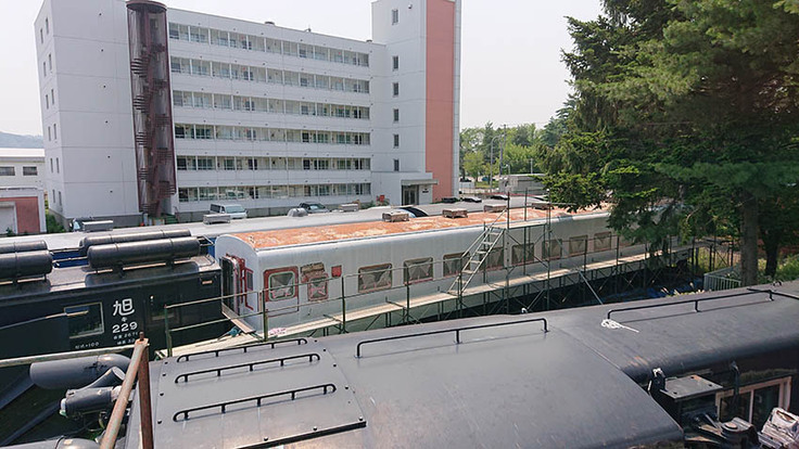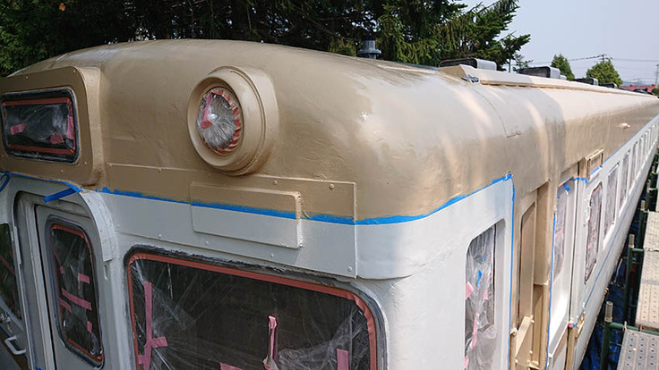 7月15日からキハ27、DD14の塗装作業が始まっています。作業が始まると早いです!塗装作業は7月中には完了しそうです。