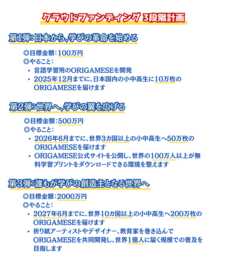 皆様からのご支援を力に、ORIGAMESEは日本から世界へ、そして誰もが学びを創造できる未来へと大きく羽ばたいていきます。