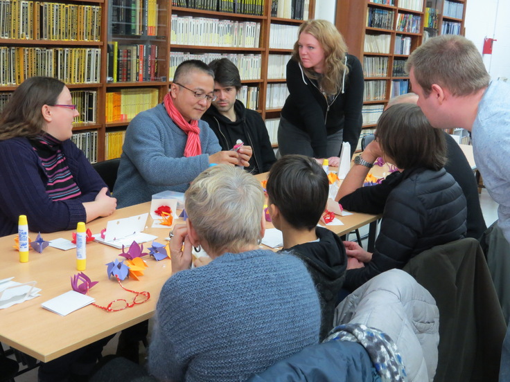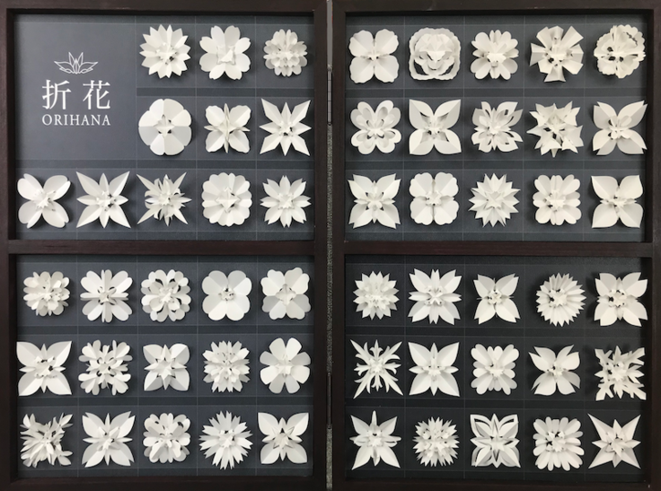 現在までに1,000種類以上の折花データーがあり、今年の春からの中学生の美術教科書にも記載されていて、折花の仲間もインストラクターが約100人、NYやフランスにも仲間が増えています。