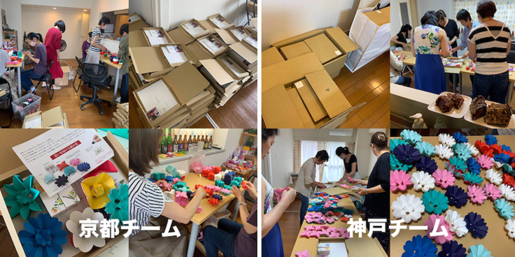 折花の作成、発送には延50人以上の仲間が協力してくれています。正直私自身もこのコロナ禍で折花の講習会やイベントができない状況で売り上げもほとんどなく、今回の活動の多くを銀行からの借り入れで行っています。