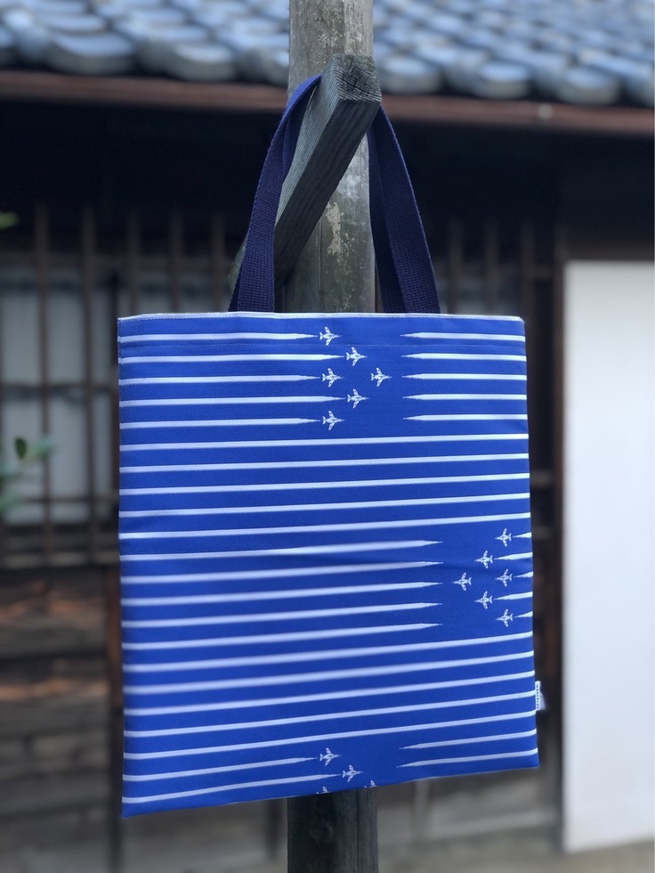 その時に企画したのが、このテキスタイルです、ブルーインパルスの疾走感をモチーフにジャカードで表現しました。