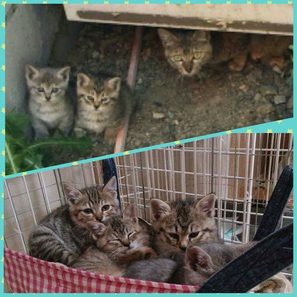 おりネコで保護し、成猫は避妊去勢、子猫たちは今離乳食を食べて元気に育っております。