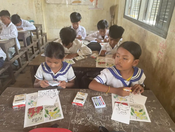 カンボジアに絵手紙夢工房の公認講師として去年はコンポンスプーのボンクナー小学校で絵手紙をしてきました。