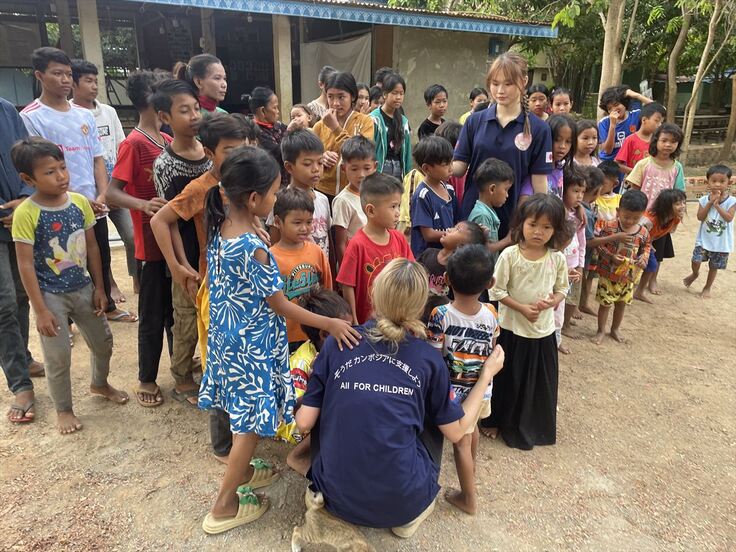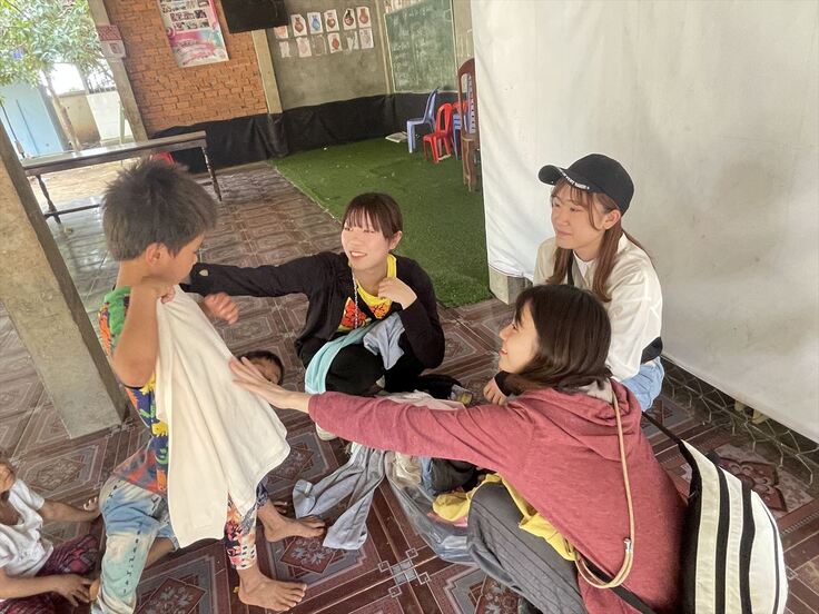 ①日本からのご支援者が訪問。子どもたちに、服を寄贈していただきました。