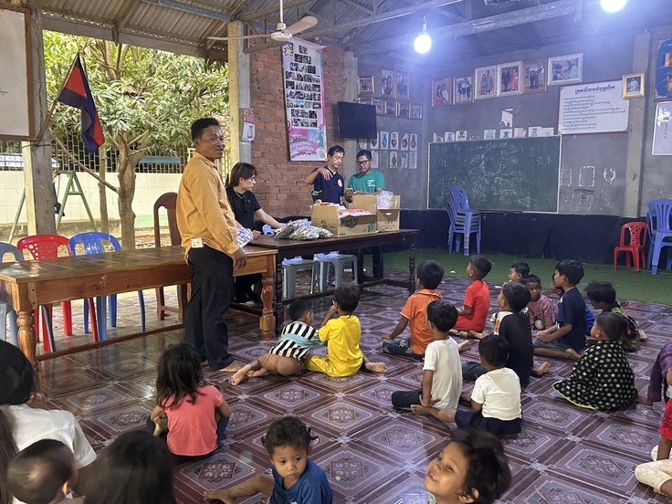 ③日本からお越しのご支援者が子どもたちにお菓子をプレゼント
