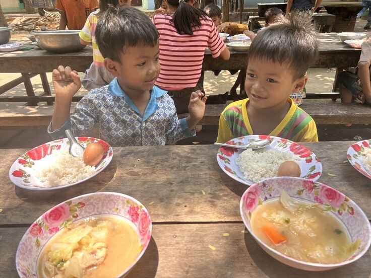この日の夕食は、おいしいものが食べられて子どもたちは幸せそうでした。