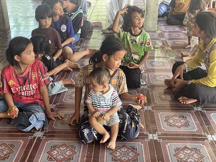 子どもたちに、ランブータン(クメール語でサウマウ)という果物を買ってきてくれました。