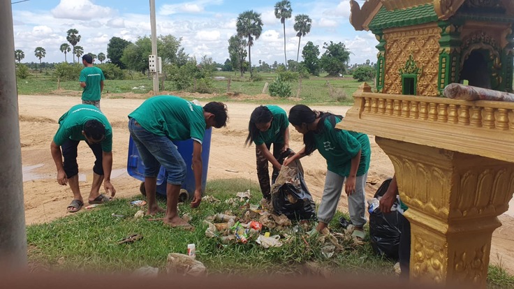 今日も理事長のサラットさんをはじめ、職員と子どもたちが、KrangChekの町の清掃活動に行きました。