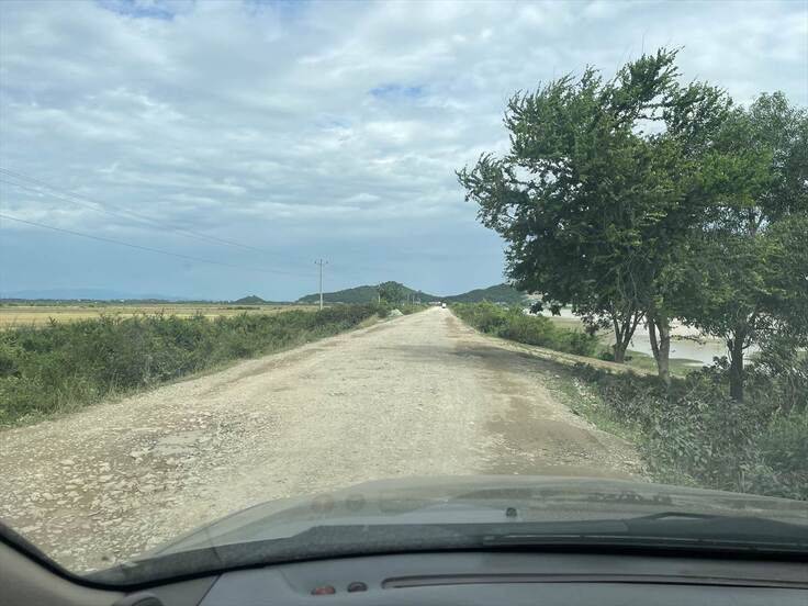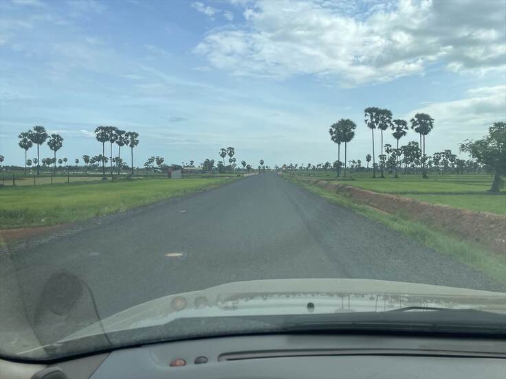 昨日訪問したコンポンチュナン州の小学校への道。悪路を20㎞以上も進みます。