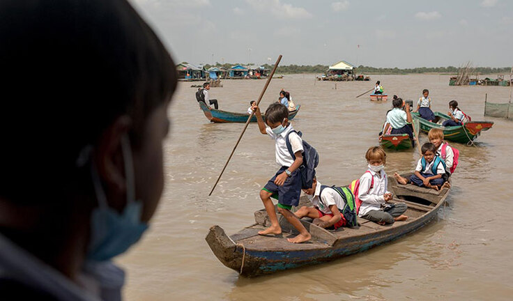 その間、子どもたちは、ボートに乗って、通学します。